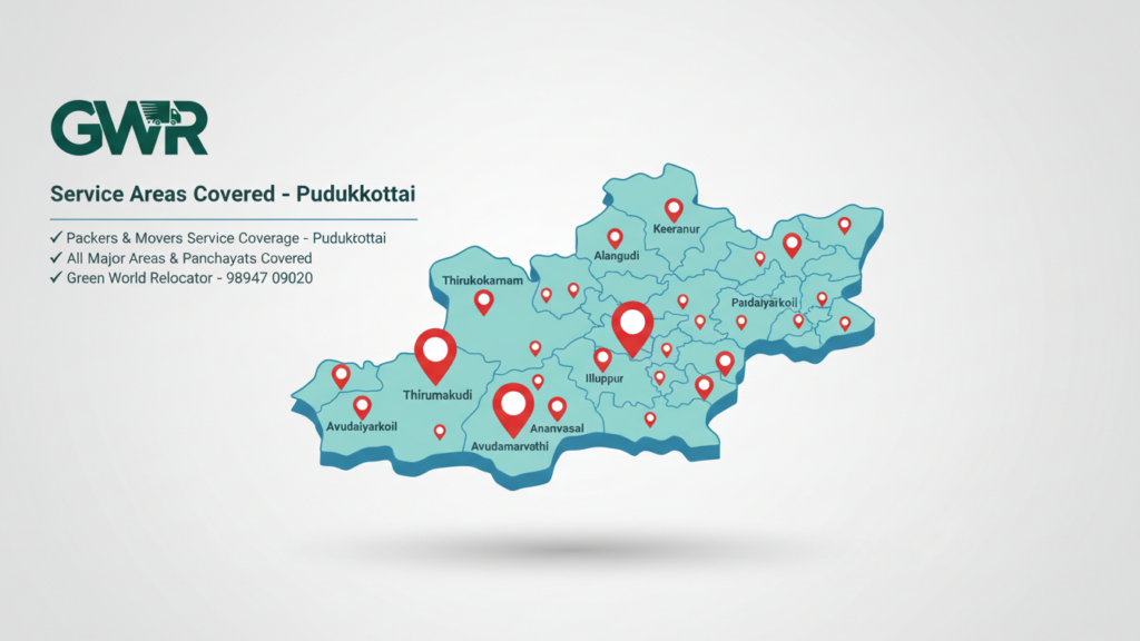 At Green World Relocator, we provide affordable, secure, and professional relocation services tailored to your needs in Pudukkottai.
